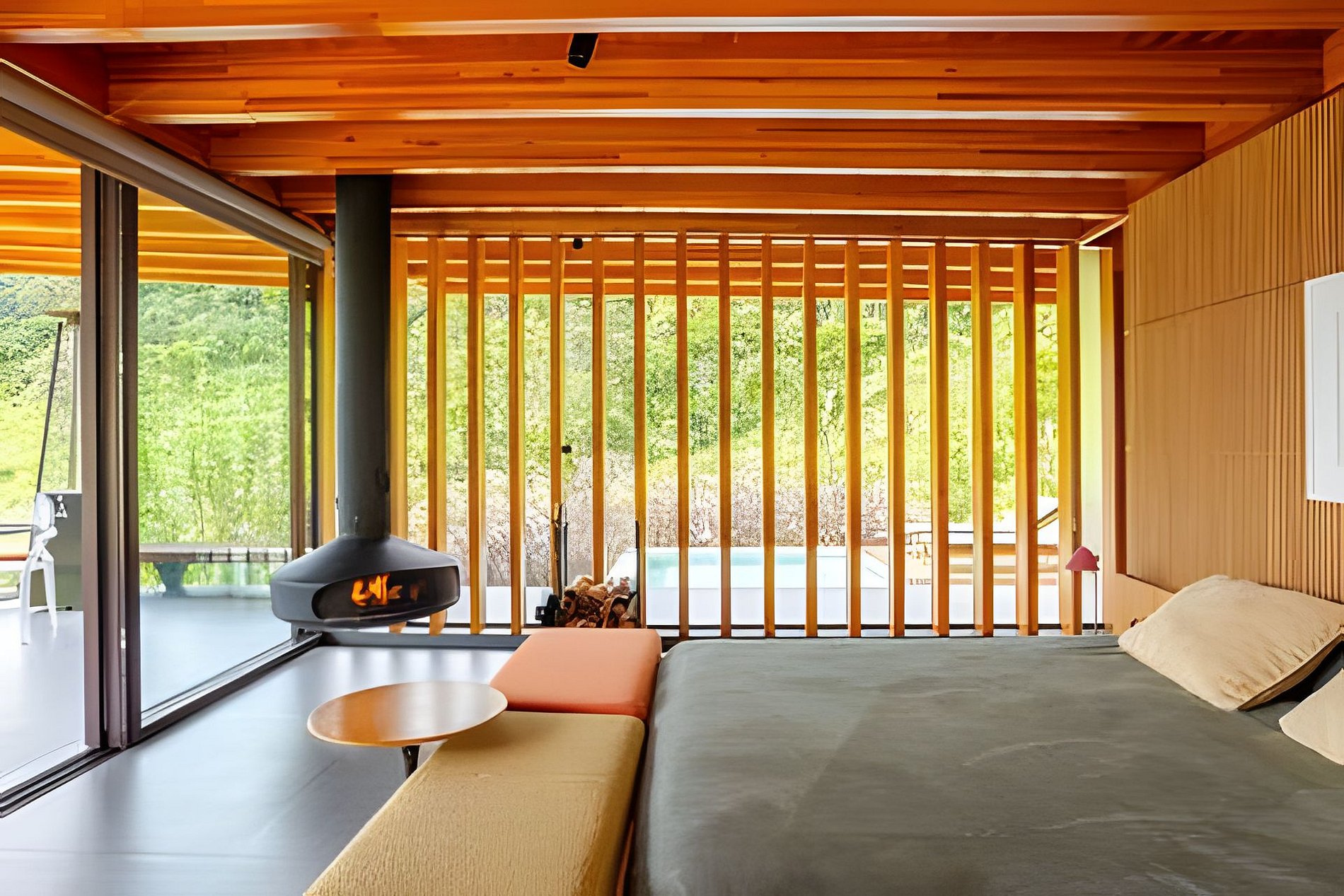 Nosso bangalô é ideal para casais, porém projetamos um futon que pode ser acomodado em frente à cama caso queiram trazer um filho.