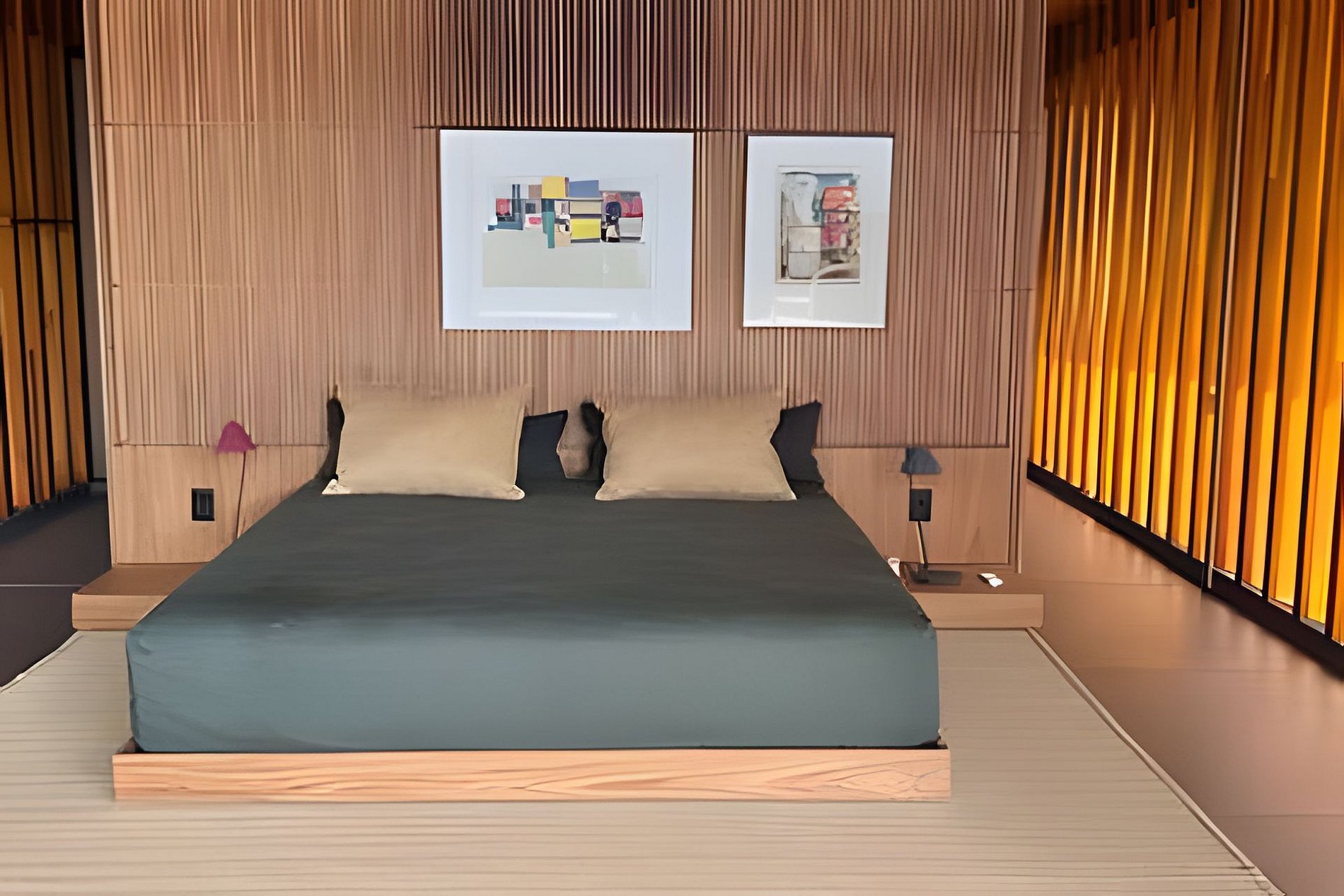Nosso bangalô é ideal para casais, porém projetamos um futon que pode ser acomodado em frente à cama caso queiram trazer um filho.