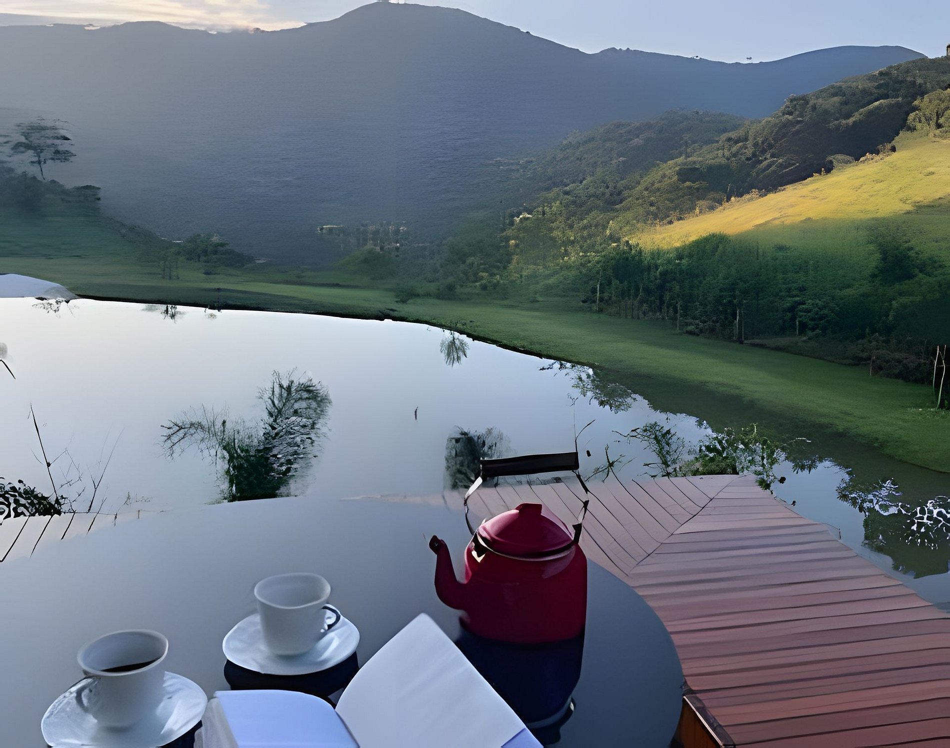 Nosso bangalô está cercado por uma paisagem exuberante, onde a natureza é protagonista. Aqui, você acordará com o canto dos pássaros, respirará ar puro e desfrutará de um ambiente tranquilo e acolhedor.