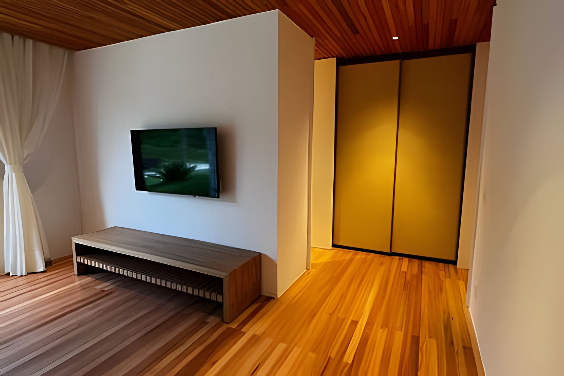 • Smart TV, roupa de cama e toalhas Trousseau, armário em palha