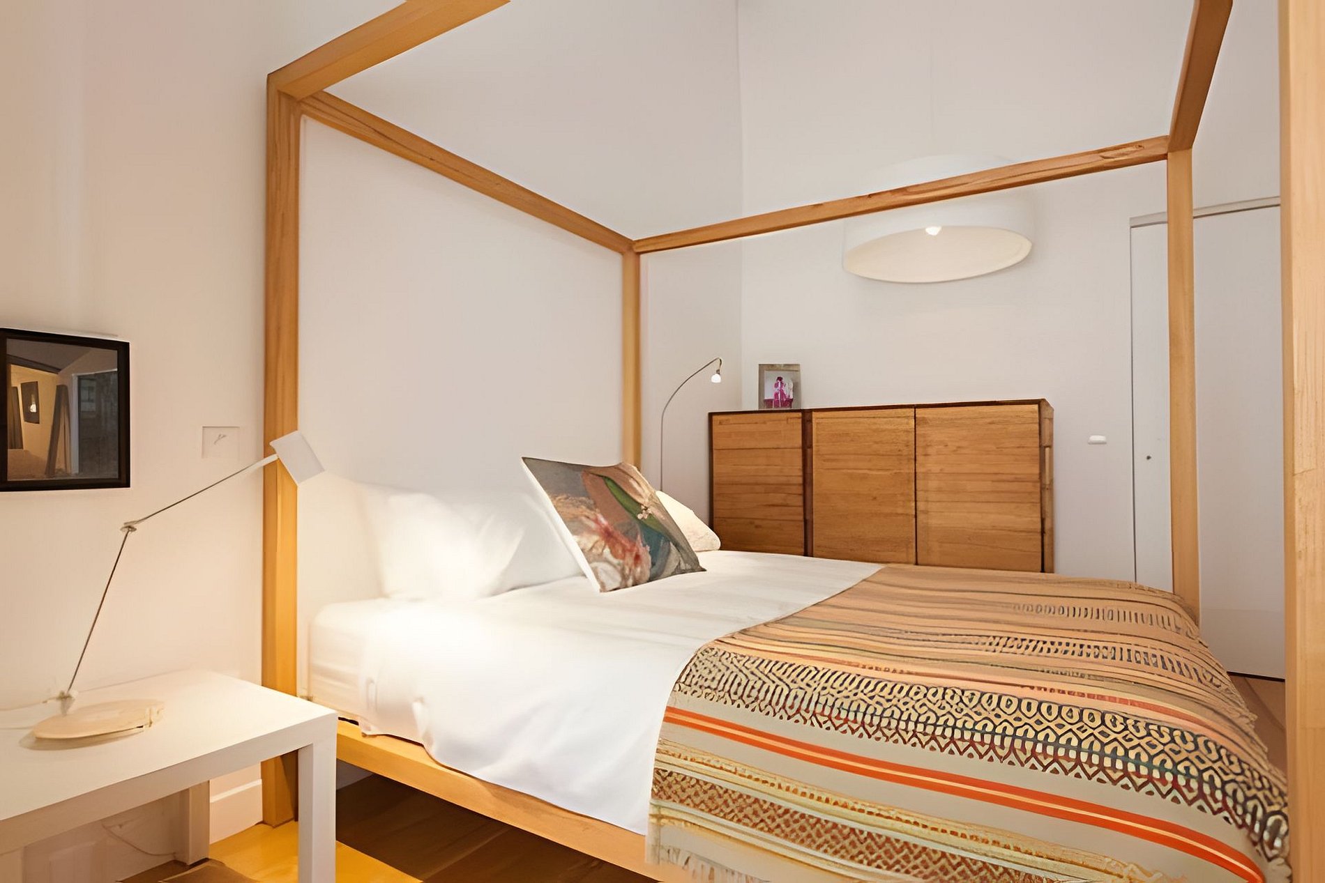 The interior design of the apartment creates a seamless blend of style and comfort, offering a true sense of sophistication with modern technology and furnishings. The apartment features two suites that can accommodate up to four guests, one bathroom, and a spacious living and dining area with a stylish fireplace. There's also a mezzanine for relaxation and a modern, fully equipped kitchen. Bathed in natural sunlight, this apartment is ideal for a small group of friends exploring the vibrant side of Lisbon, a family on a short break, a romantic getaway, or even a business trip. Guests have access to a modern, fully equipped kitchen with a washer, fast Wi-Fi, TV, and high-quality sound system. We also provide towels and bed linens for your convenience.