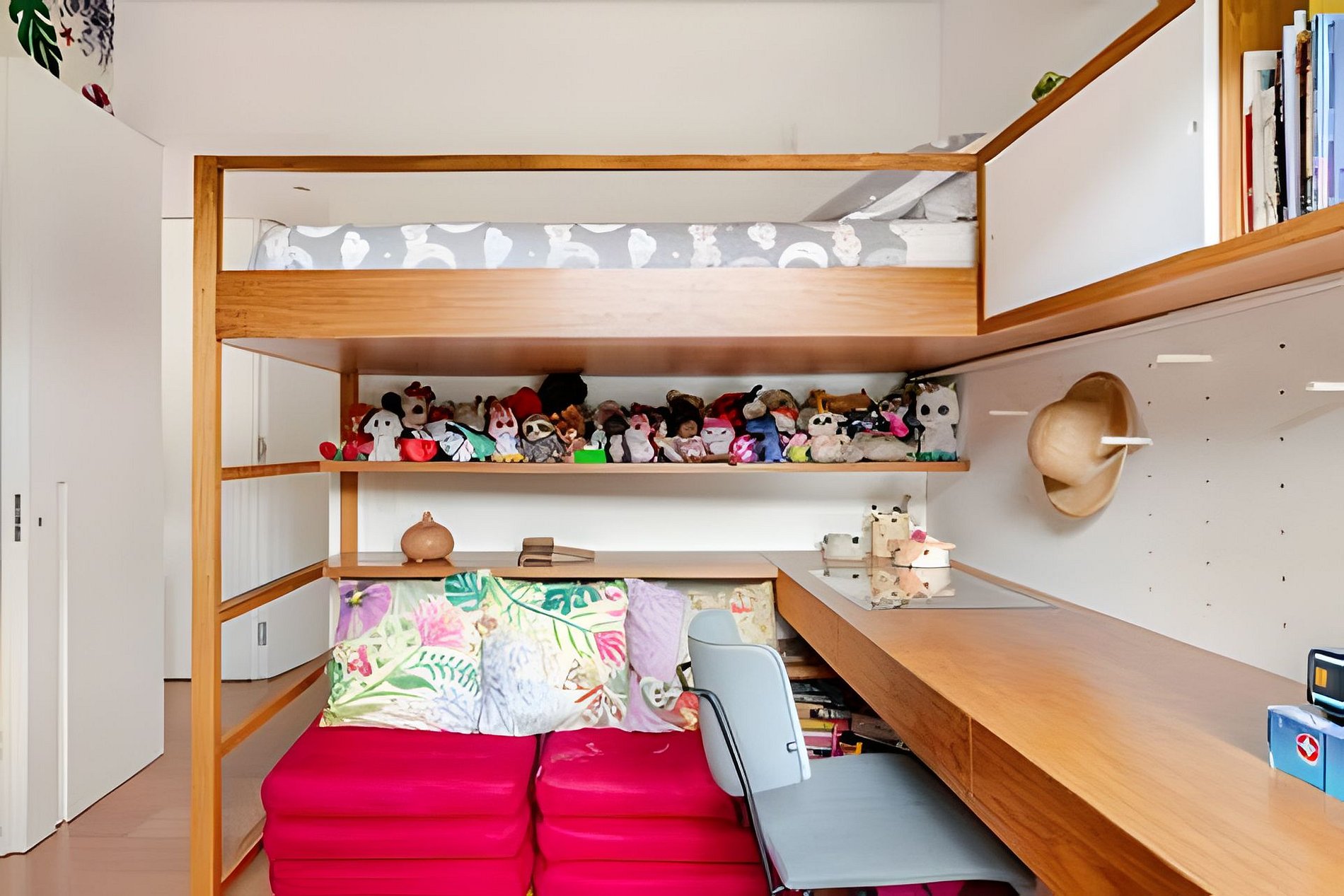Destaques do imóvel: • 1 suíte com ar-condicionado, TV e armários • 1 quarto para criança/adolescente com ar-condicionado • Escritório com mesa para trabalho com ar-condicionado • Sala espaçosa com janelas que emolduram o verde da mata • Cozinha integrada com utensílios completos • Banheiro com ducha potente e acabamentos elegantes • Lavanderia com máquina de lavar/secar • Vaga de garagem • Wi-Fi de alta velocidade