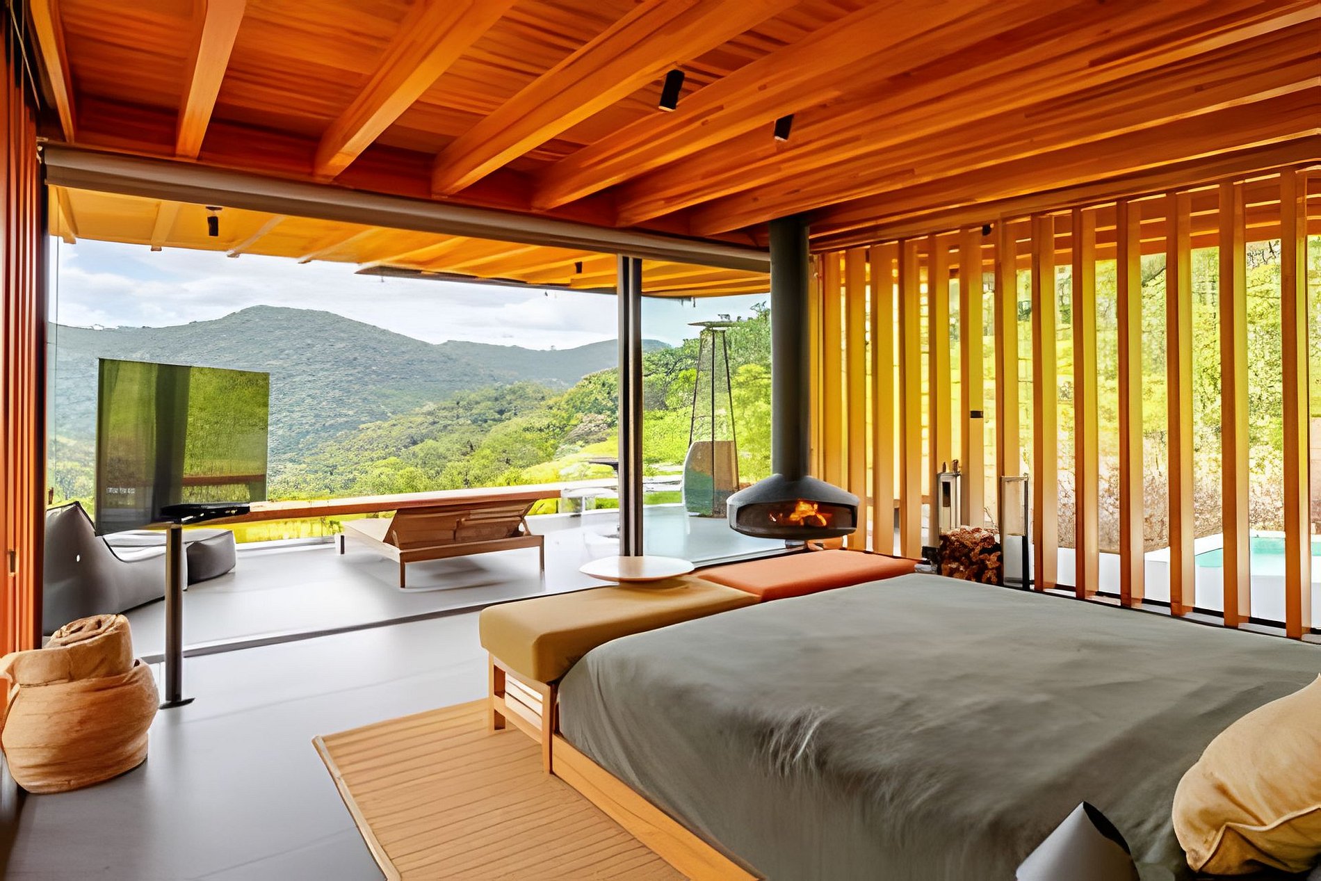 O bangalô foi especialmente projetado para casais e contempla: